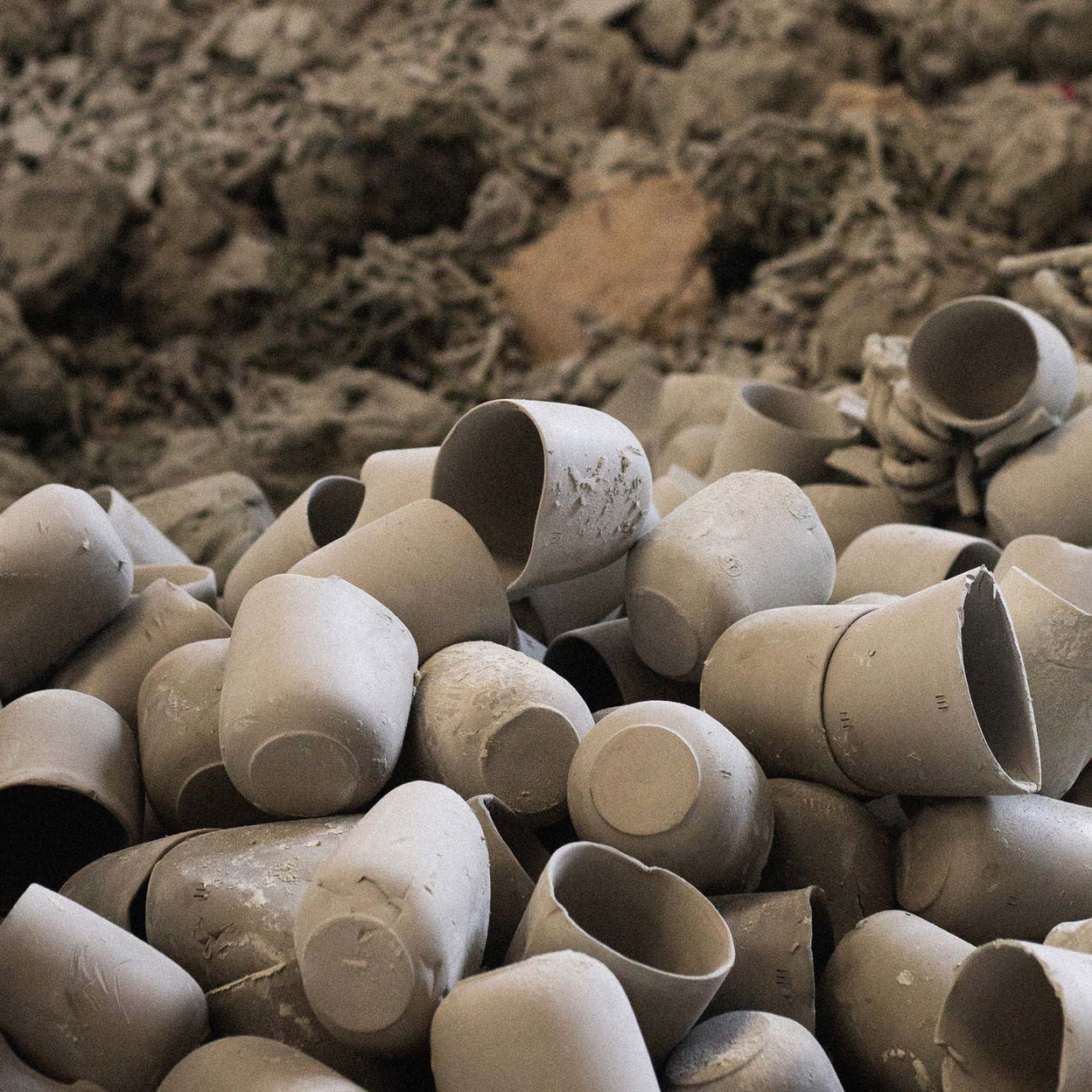 Unsere Keramik besteht aus einer Mischung aus recycelter Keramik und Ton, der nur wenige Kilometer von der Manufaktur entfernt gewonnen wird.